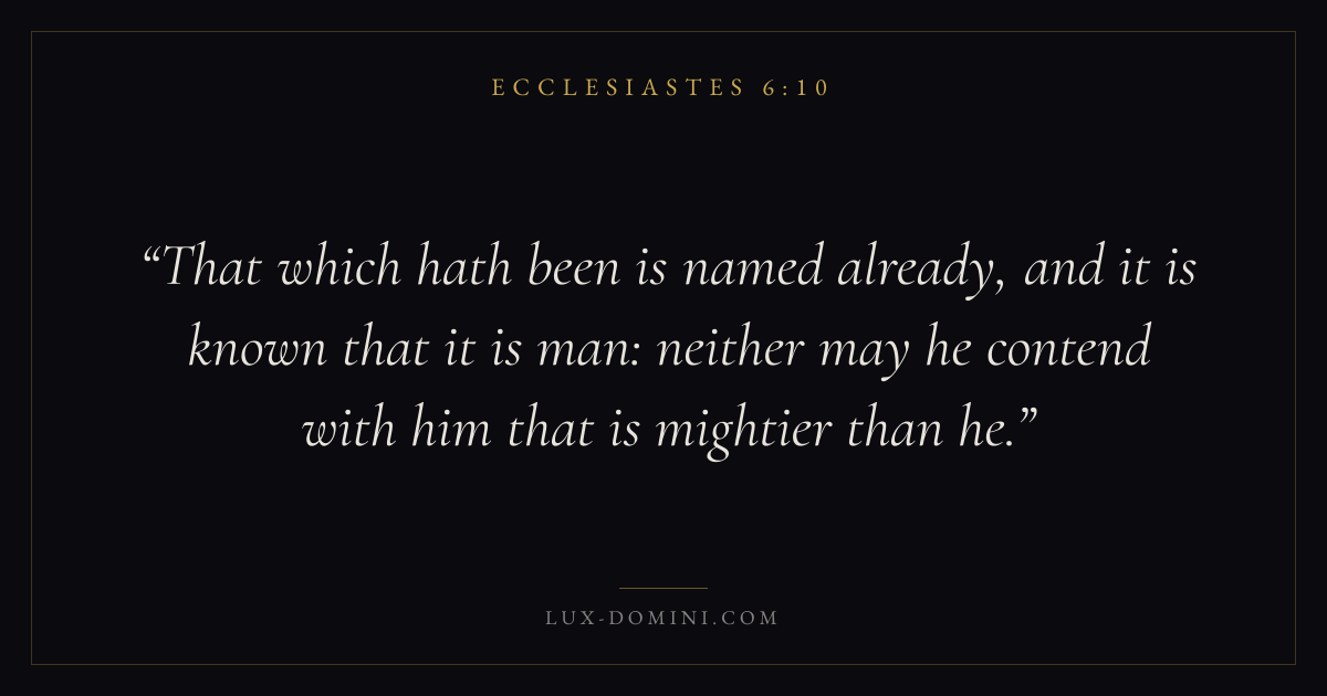 That which hath been is named already, and it is known that it is man: neither may he contend with him that is mightier than he.