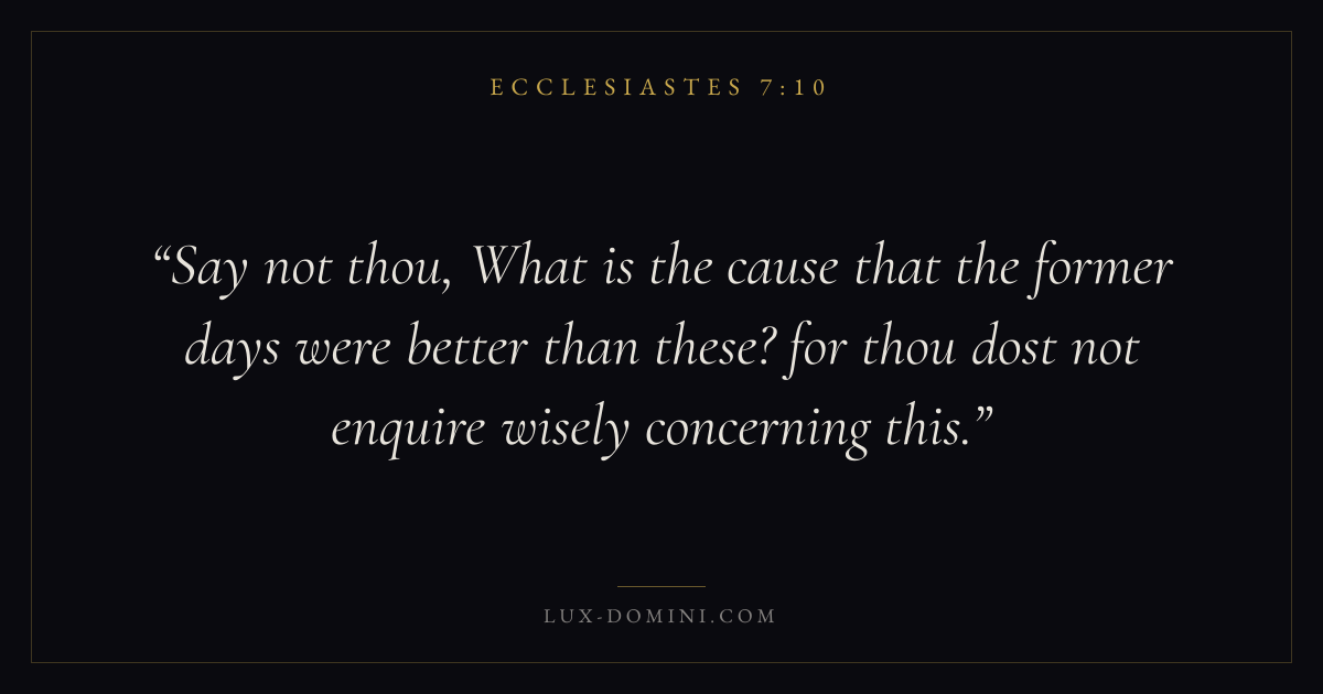 Say not thou, What is the cause that the former days were better than these? for thou dost not enquire wisely concerning this.