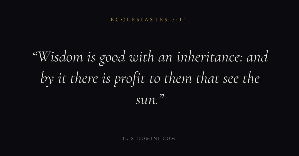 Wisdom is good with an inheritance: and by it there is profit to them that see the sun.