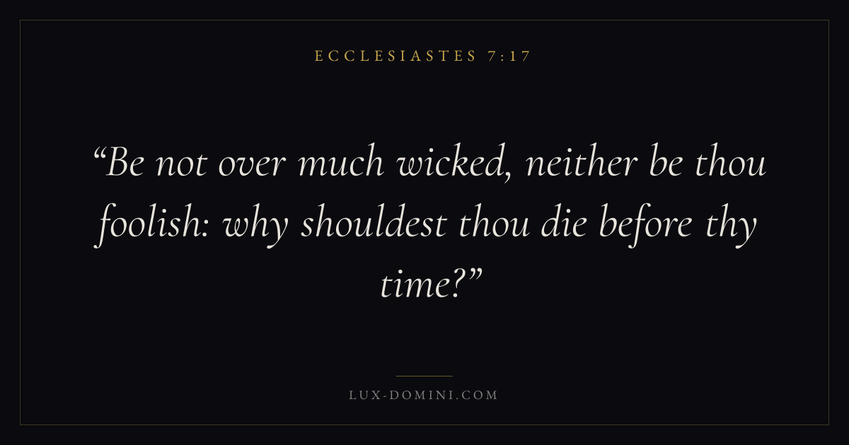 Be not over much wicked, neither be thou foolish: why shouldest thou die before thy time?