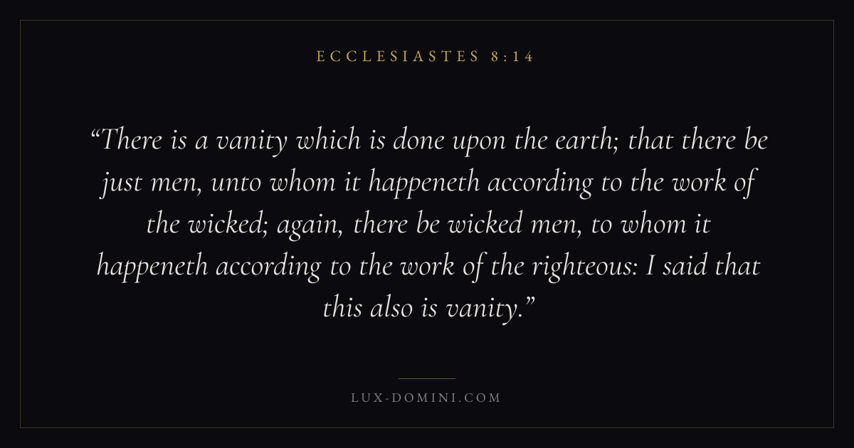 There is a vanity which is done upon the earth; that there be just men, unto whom it happeneth according to the work of the wicked; again, there be wicked men, to whom it happeneth according to the work of the righteous: I said that this also is vanity.