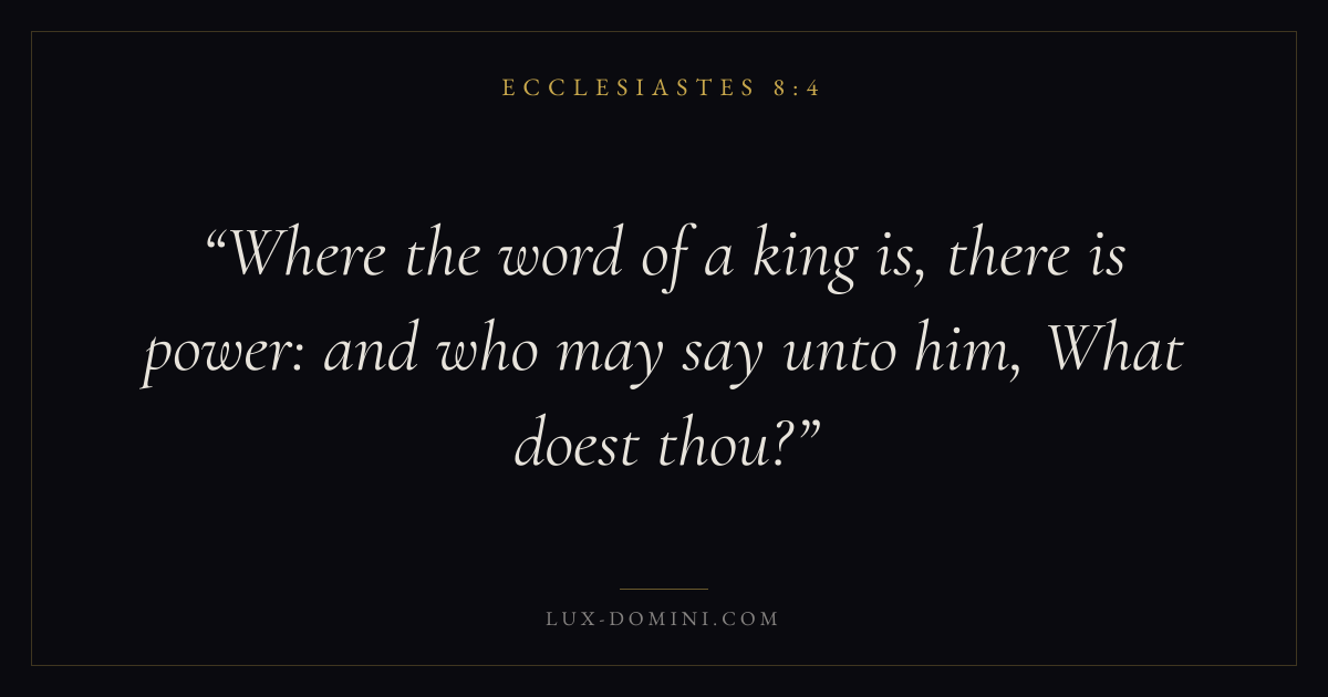 Where the word of a king is, there is power: and who may say unto him, What doest thou?