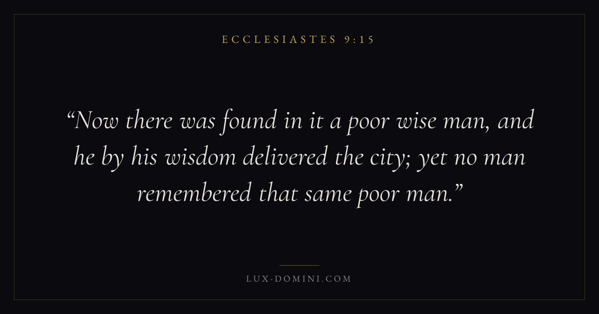 Now there was found in it a poor wise man, and he by his wisdom delivered the city; yet no man remembered that same poor man.