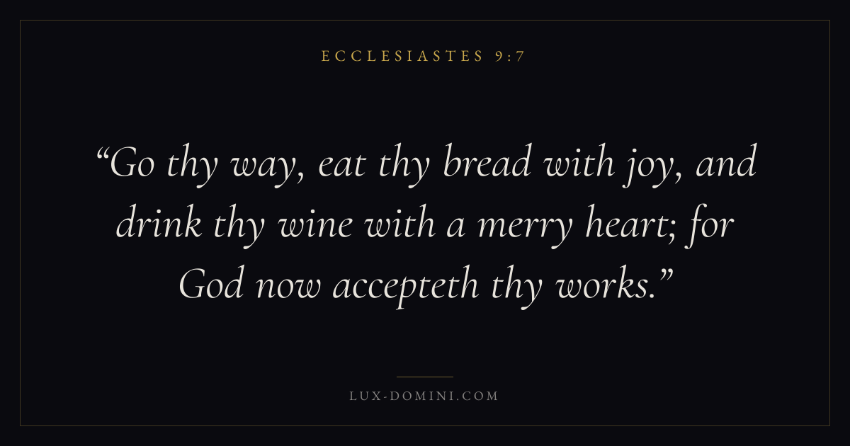 Go thy way, eat thy bread with joy, and drink thy wine with a merry heart; for God now accepteth thy works.