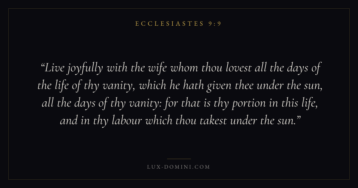 Live joyfully with the wife whom thou lovest all the days of the life of thy vanity, which he hath given thee under the sun, all the days of thy vanity: for that is thy portion in this life, and in thy labour which thou takest under the sun.