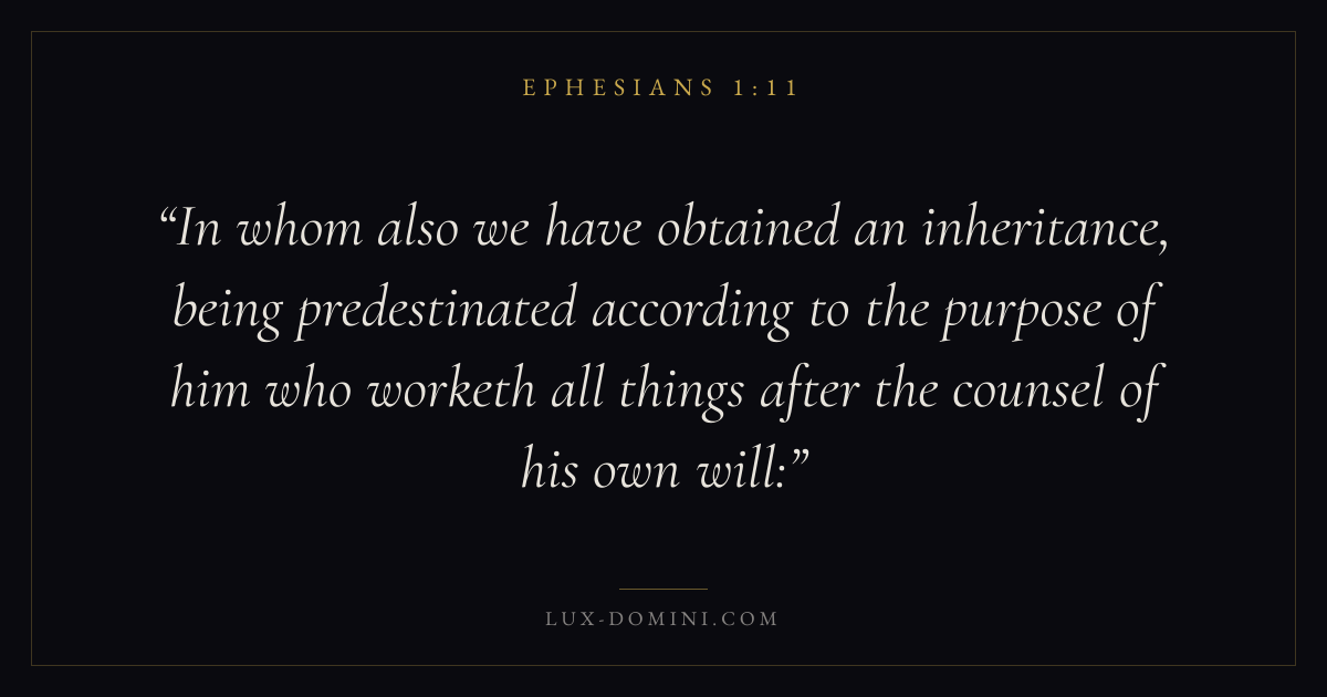 In whom also we have obtained an inheritance, being predestinated according to the purpose of him who worketh all things after the counsel of his own will: