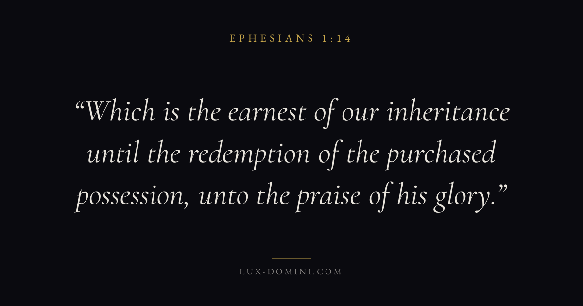 Which is the earnest of our inheritance until the redemption of the purchased possession, unto the praise of his glory.