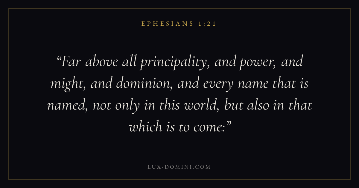 Far above all principality, and power, and might, and dominion, and every name that is named, not only in this world, but also in that which is to come: