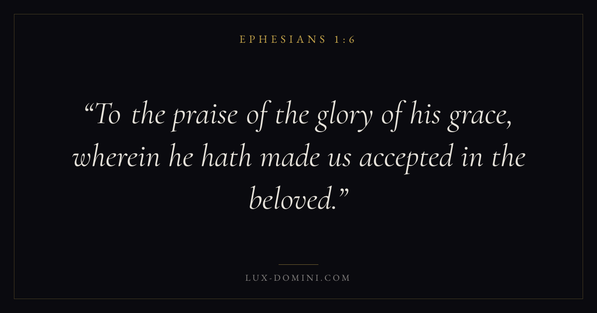 To the praise of the glory of his grace, wherein he hath made us accepted in the beloved.