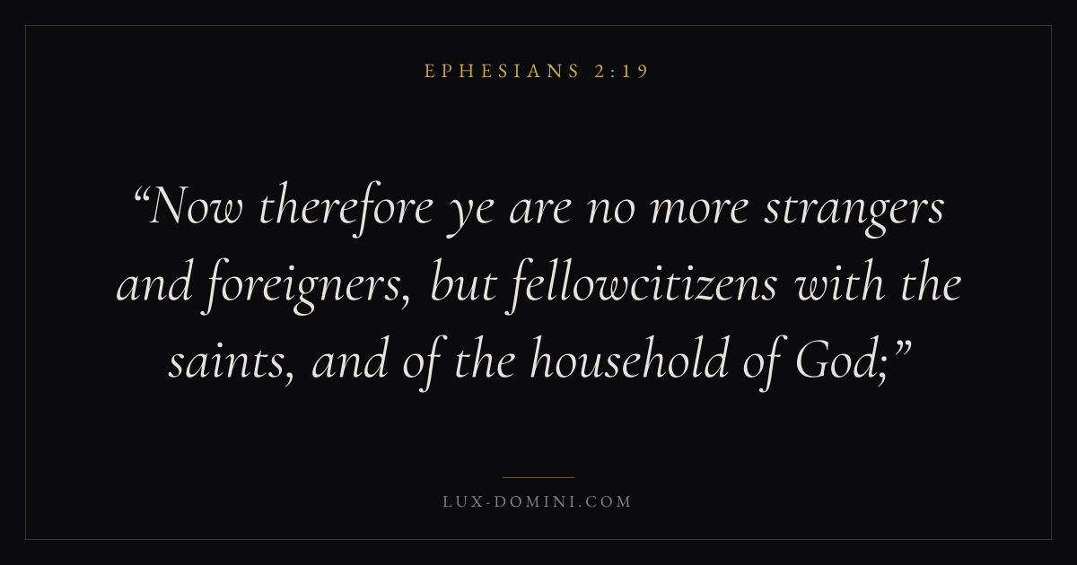 Now therefore ye are no more strangers and foreigners, but fellowcitizens with the saints, and of the household of God;