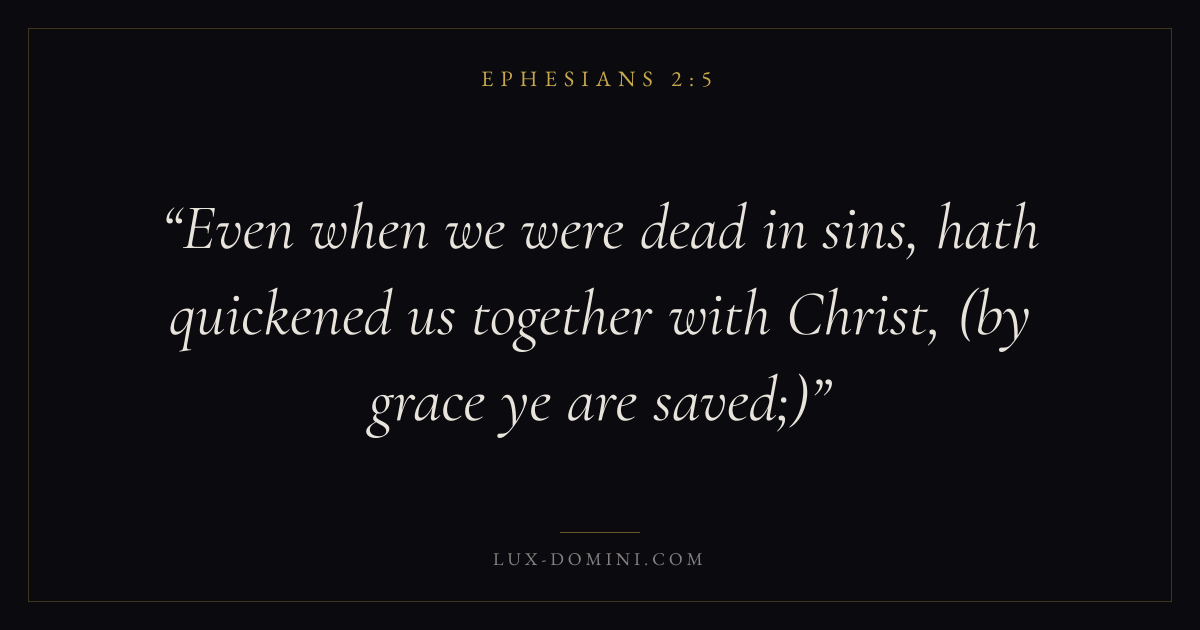 Even when we were dead in sins, hath quickened us together with Christ, (by grace ye are saved;)