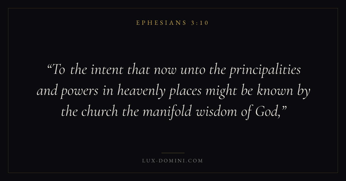 To the intent that now unto the principalities and powers in heavenly places might be known by the church the manifold wisdom of God,