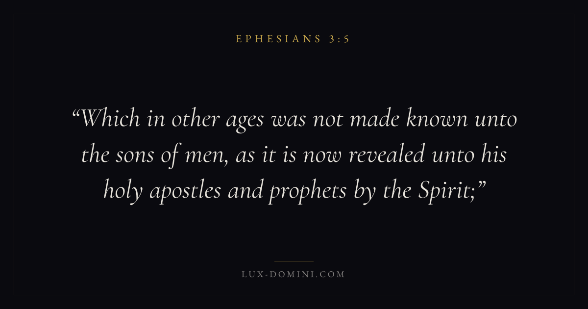 Which in other ages was not made known unto the sons of men, as it is now revealed unto his holy apostles and prophets by the Spirit;