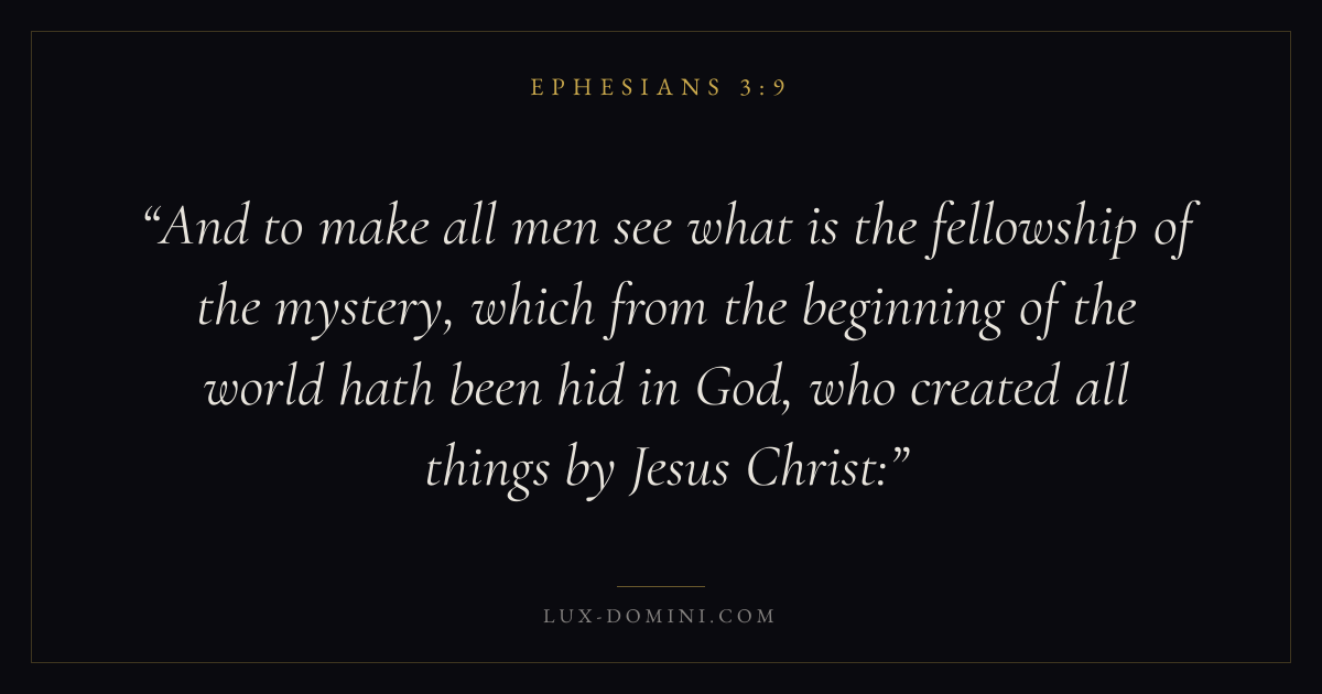And to make all men see what is the fellowship of the mystery, which from the beginning of the world hath been hid in God, who created all things by Jesus Christ: