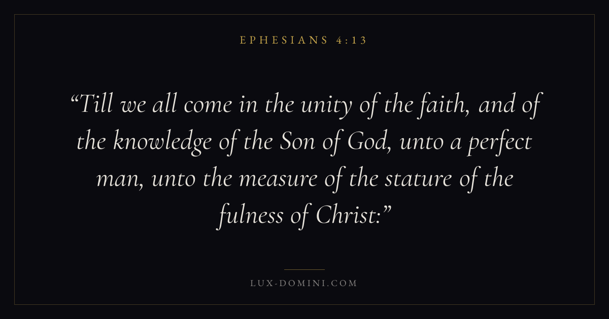 Till we all come in the unity of the faith, and of the knowledge of the Son of God, unto a perfect man, unto the measure of the stature of the fulness of Christ: