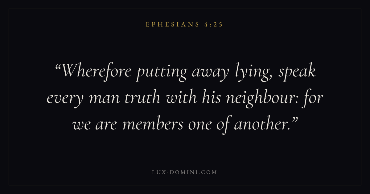 Wherefore putting away lying, speak every man truth with his neighbour: for we are members one of another.