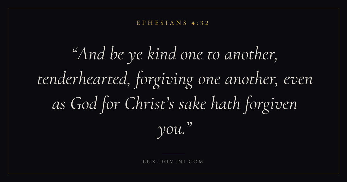 And be ye kind one to another, tenderhearted, forgiving one another, even as God for Christ’s sake hath forgiven you.
