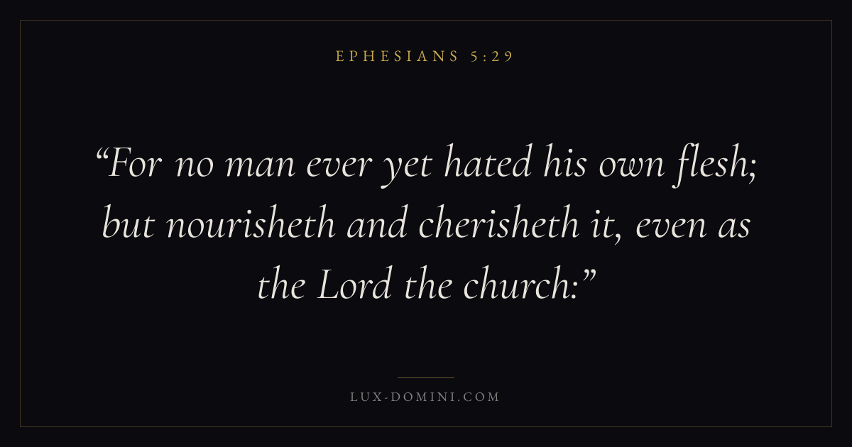 For no man ever yet hated his own flesh; but nourisheth and cherisheth it, even as the Lord the church: