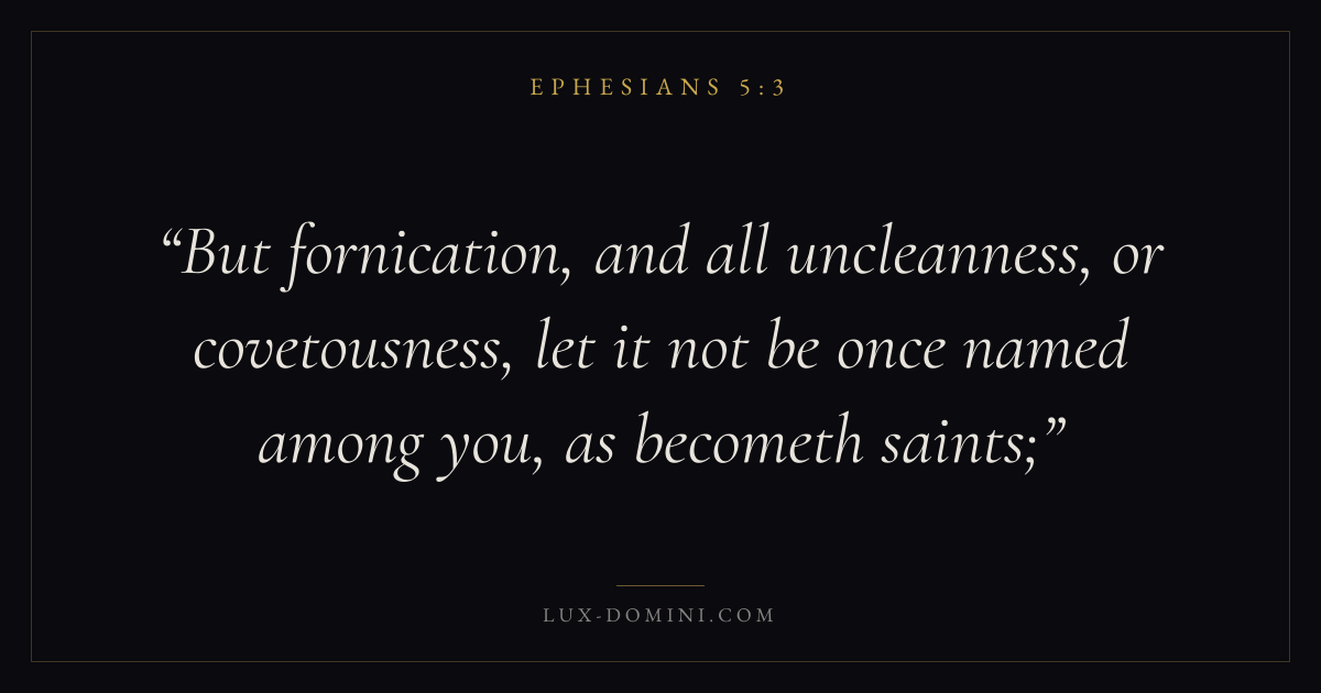 But fornication, and all uncleanness, or covetousness, let it not be once named among you, as becometh saints;