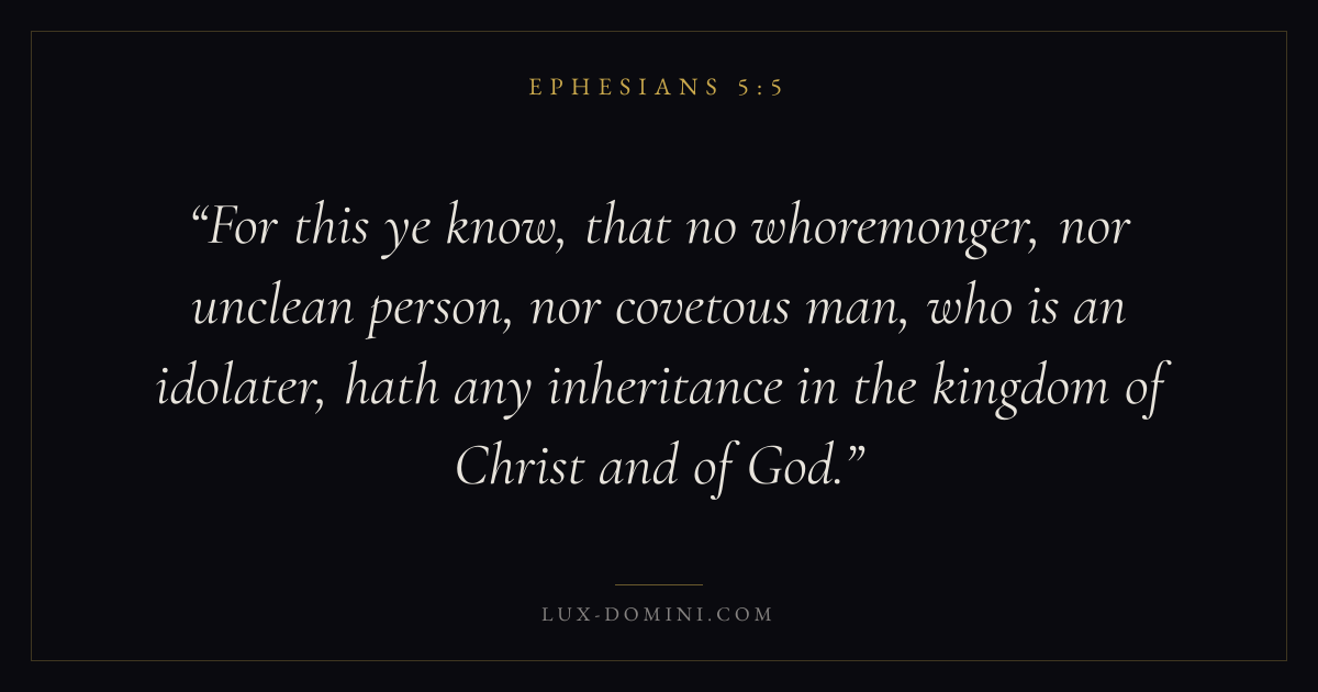 For this ye know, that no whoremonger, nor unclean person, nor covetous man, who is an idolater, hath any inheritance in the kingdom of Christ and of God.