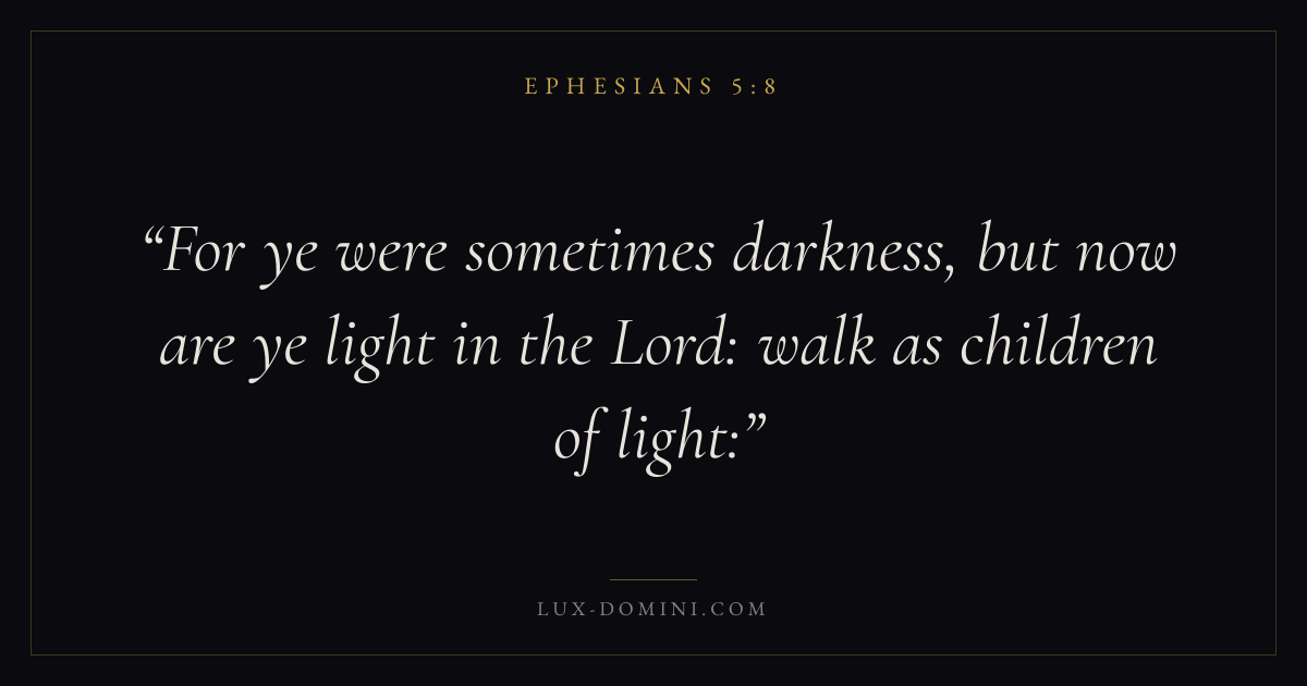 For ye were sometimes darkness, but now are ye light in the Lord: walk as children of light: