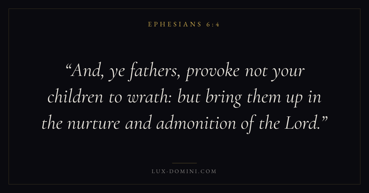 And, ye fathers, provoke not your children to wrath: but bring them up in the nurture and admonition of the Lord.