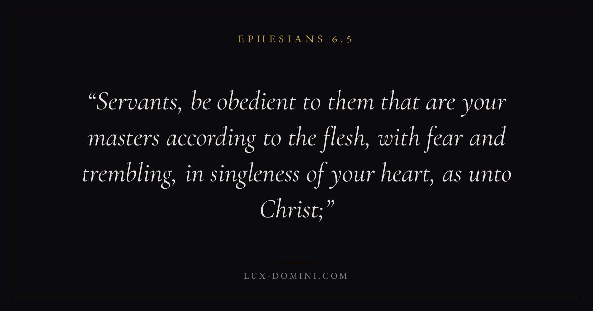 Servants, be obedient to them that are your masters according to the flesh, with fear and trembling, in singleness of your heart, as unto Christ;
