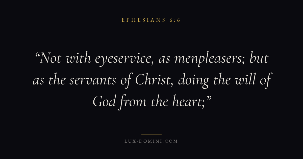 Not with eyeservice, as menpleasers; but as the servants of Christ, doing the will of God from the heart;