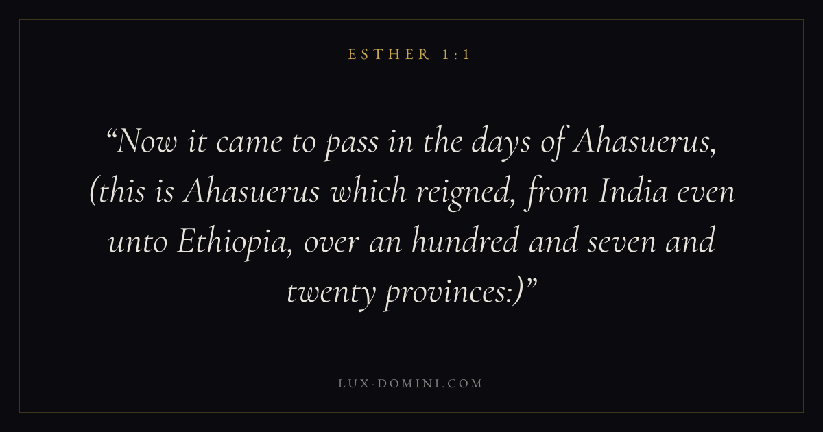 Now it came to pass in the days of Ahasuerus, (this is Ahasuerus which reigned, from India even unto Ethiopia, over an hundred and seven and twenty provinces:)