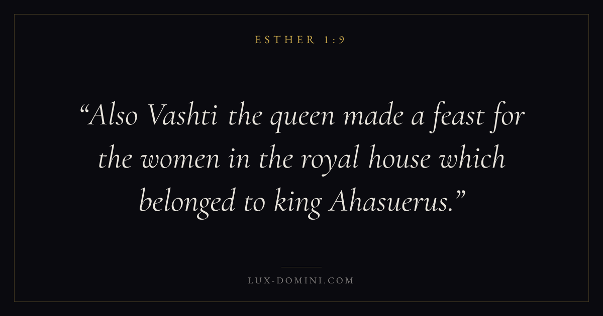 Also Vashti the queen made a feast for the women in the royal house which belonged to king Ahasuerus.