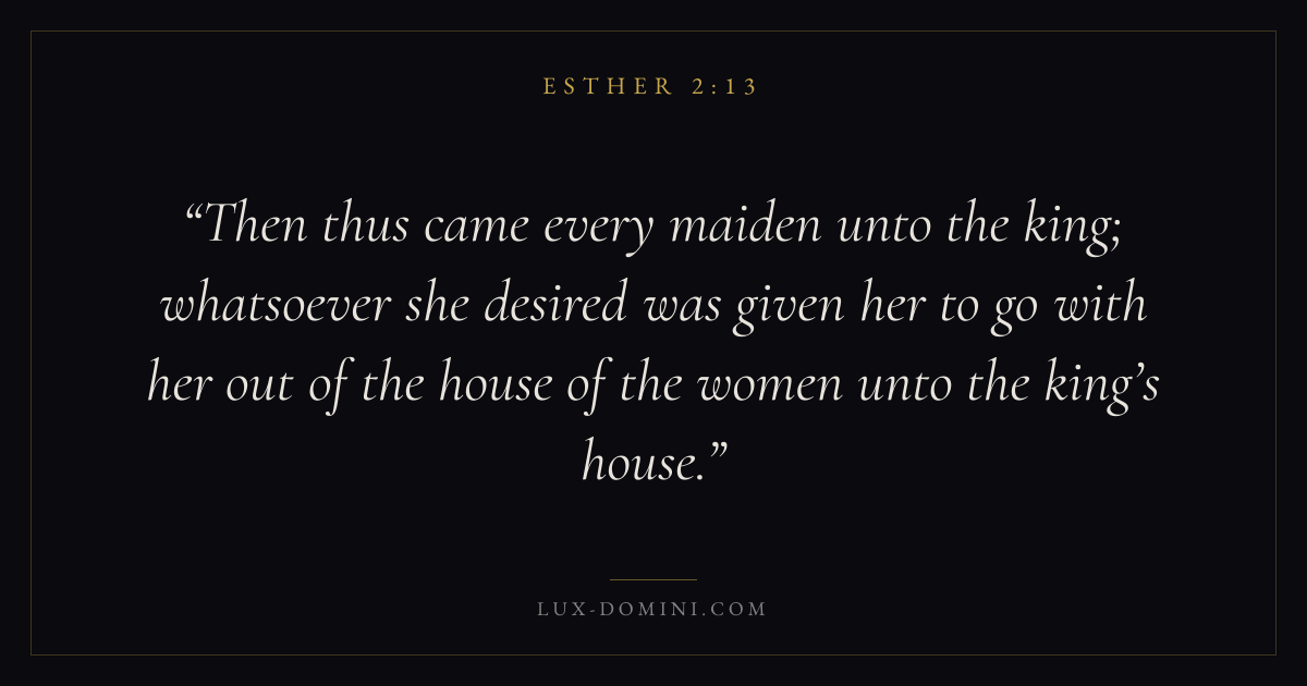 Then thus came every maiden unto the king; whatsoever she desired was given her to go with her out of the house of the women unto the king’s house.