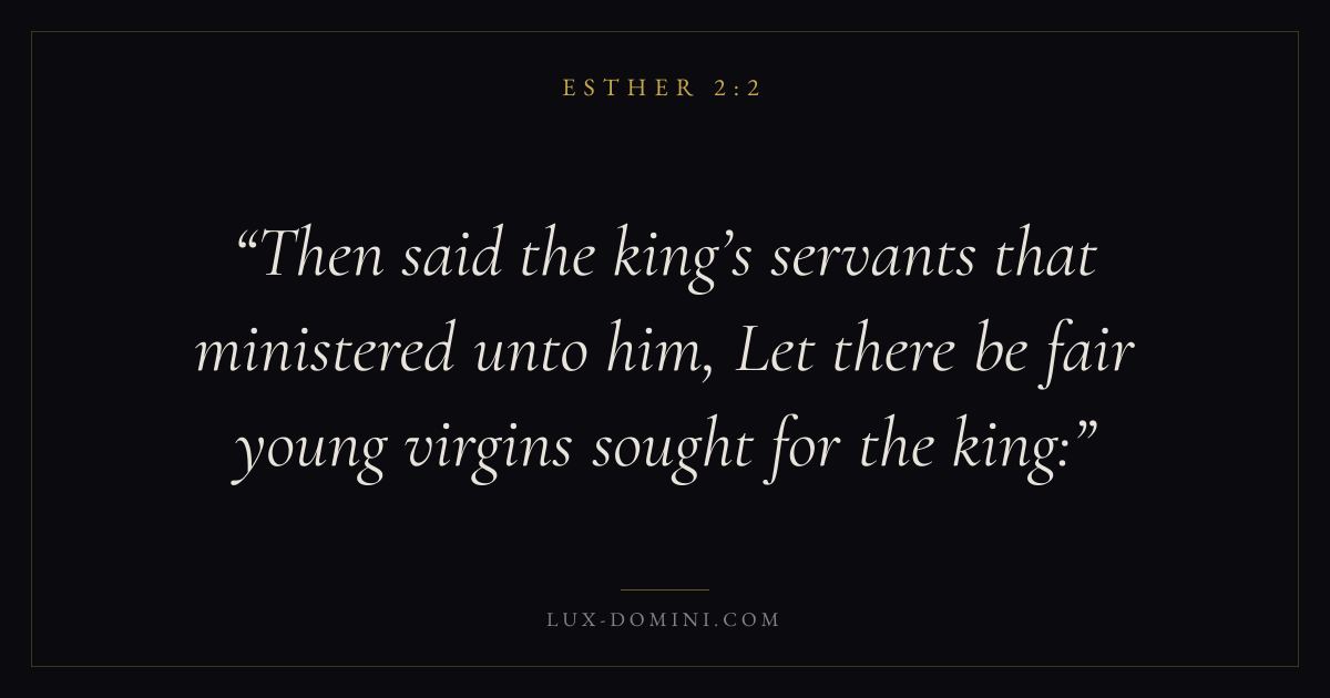 Then said the king’s servants that ministered unto him, Let there be fair young virgins sought for the king: