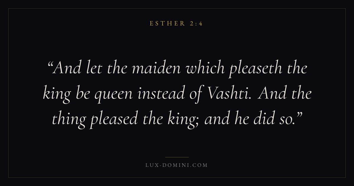 And let the maiden which pleaseth the king be queen instead of Vashti. And the thing pleased the king; and he did so.