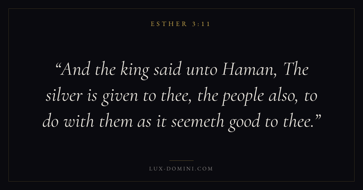 And the king said unto Haman, The silver is given to thee, the people also, to do with them as it seemeth good to thee.