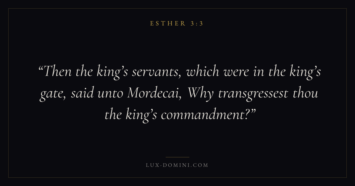 Then the king’s servants, which were in the king’s gate, said unto Mordecai, Why transgressest thou the king’s commandment?