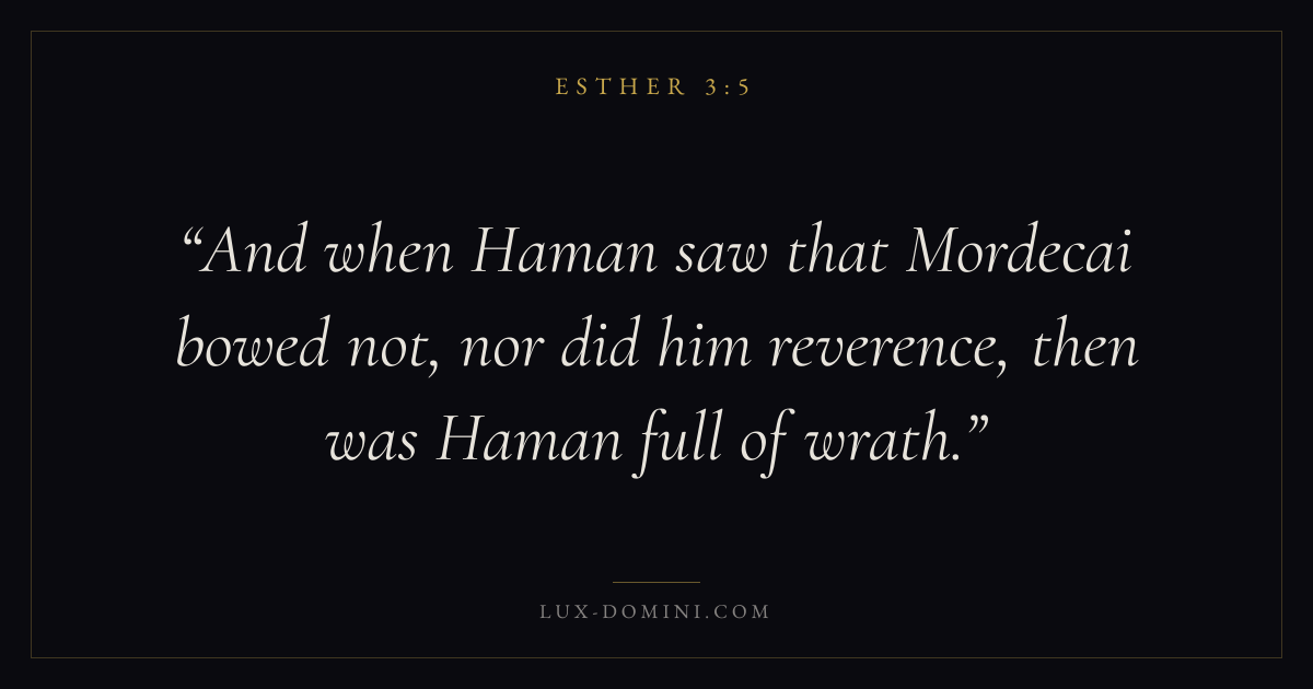 And when Haman saw that Mordecai bowed not, nor did him reverence, then was Haman full of wrath.
