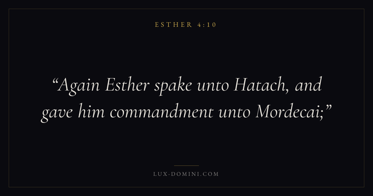 Again Esther spake unto Hatach, and gave him commandment unto Mordecai;