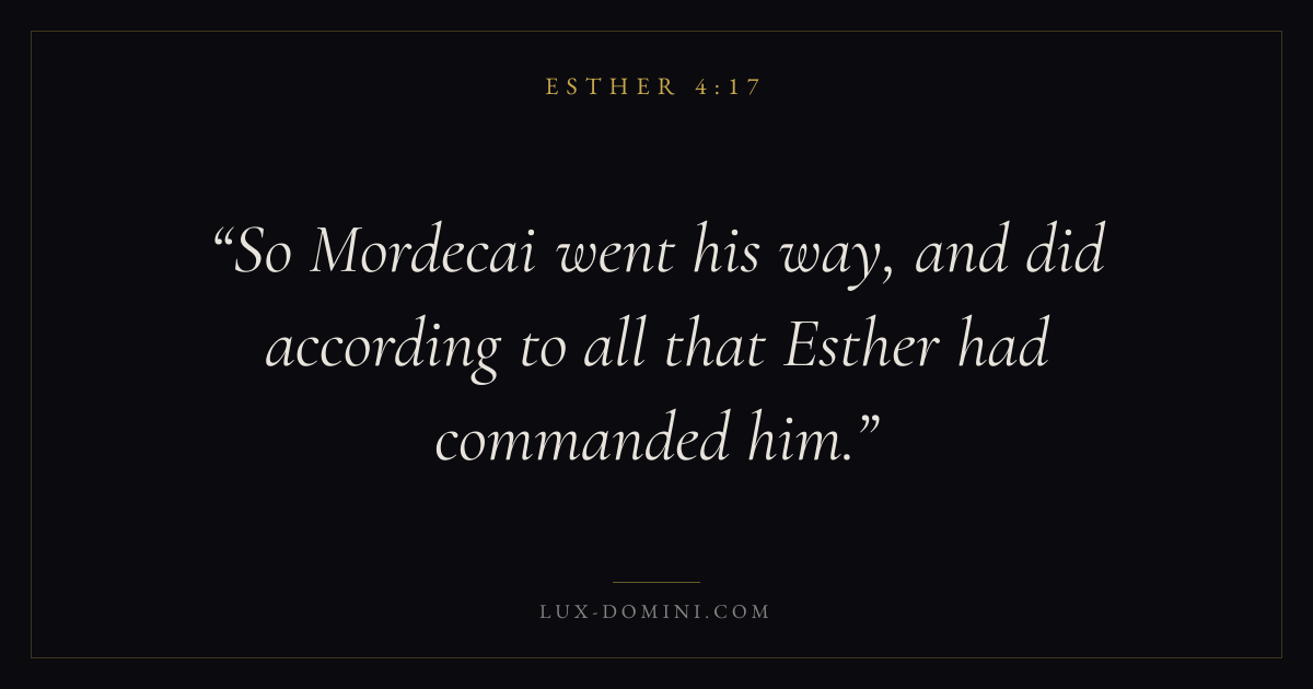 So Mordecai went his way, and did according to all that Esther had commanded him.