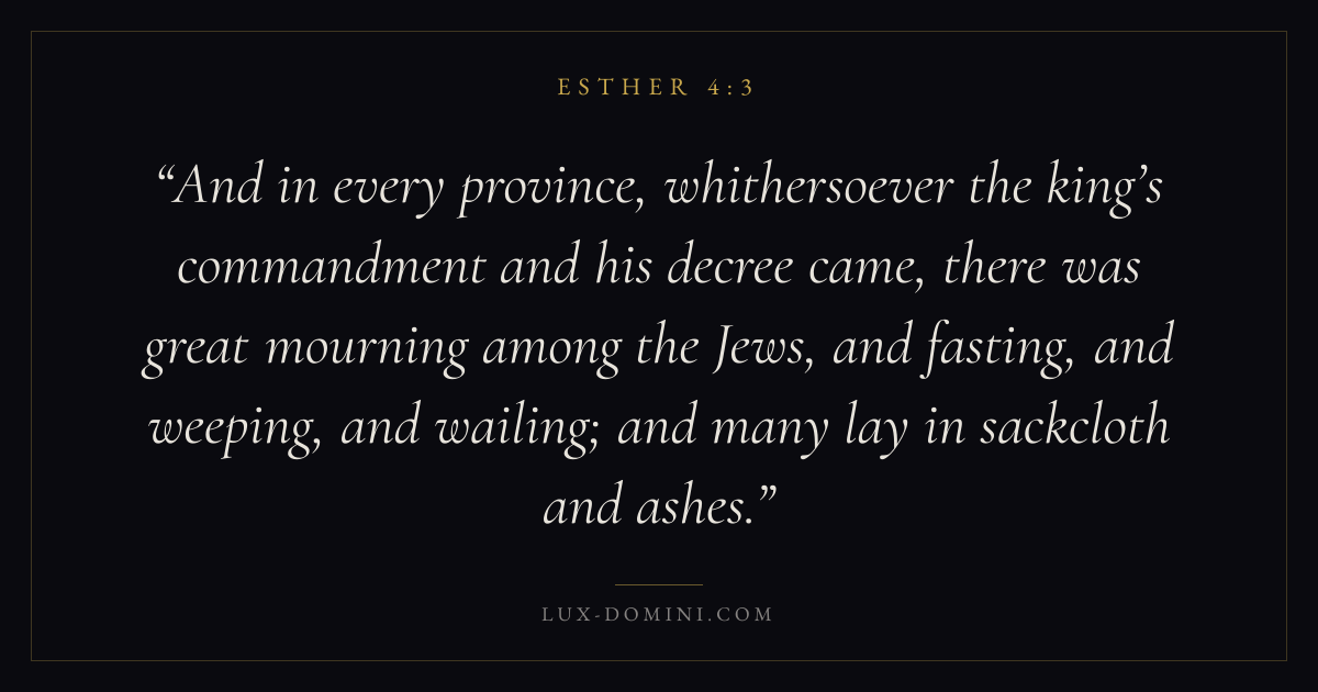 And in every province, whithersoever the king’s commandment and his decree came, there was great mourning among the Jews, and fasting, and weeping, and wailing; and many lay in sackcloth and ashes.