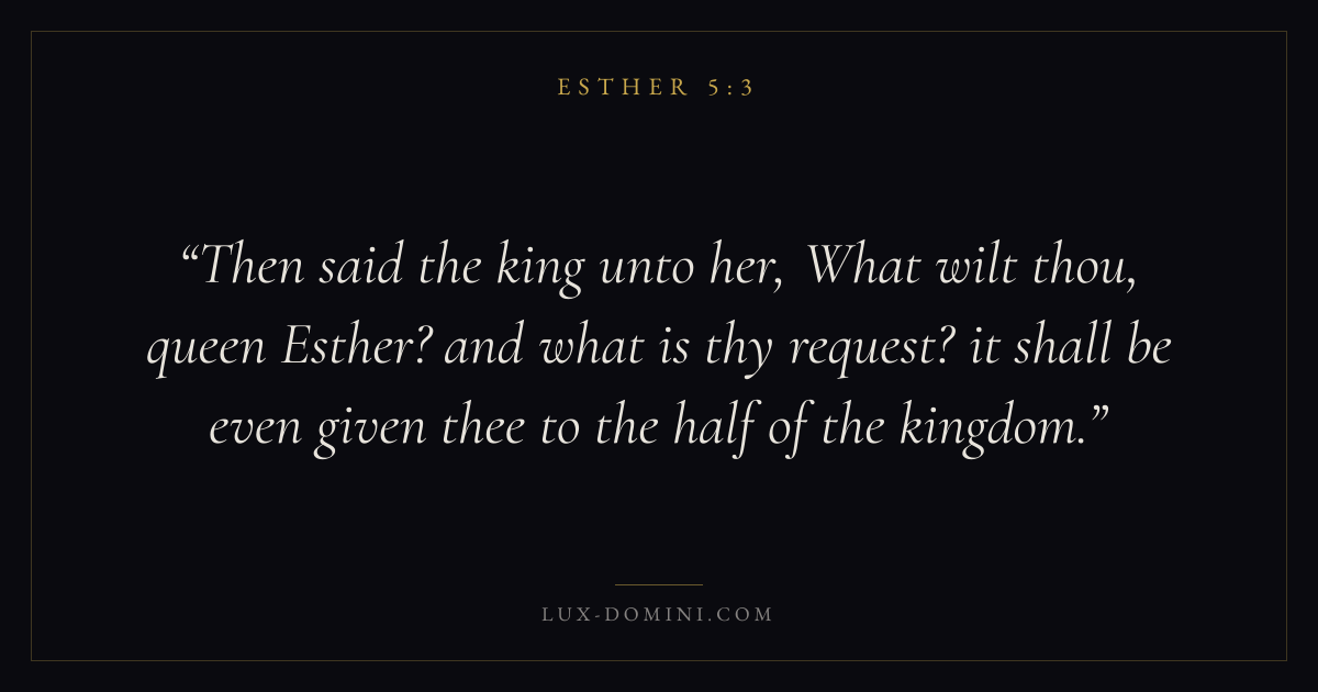 Then said the king unto her, What wilt thou, queen Esther? and what is thy request? it shall be even given thee to the half of the kingdom.
