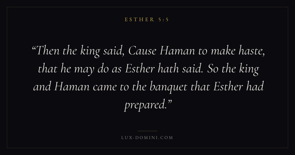 Then the king said, Cause Haman to make haste, that he may do as Esther hath said. So the king and Haman came to the banquet that Esther had prepared.