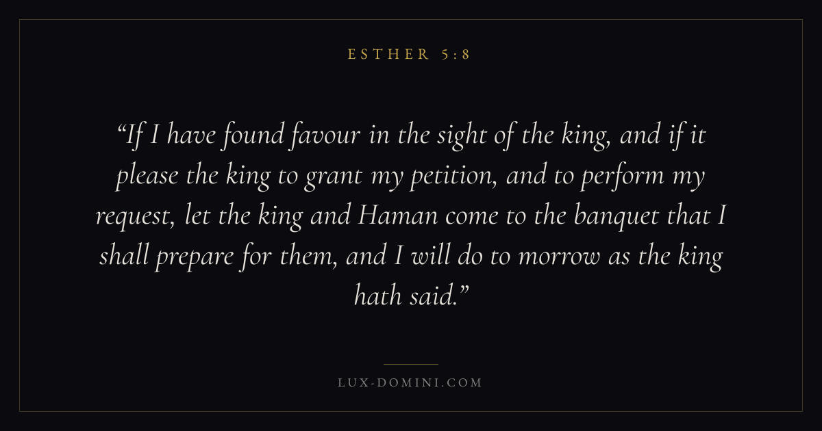 If I have found favour in the sight of the king, and if it please the king to grant my petition, and to perform my request, let the king and Haman come to the banquet that I shall prepare for them, and I will do to morrow as the king hath said.