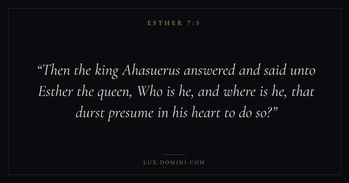 Then the king Ahasuerus answered and said unto Esther the queen, Who is he, and where is he, that durst presume in his heart to do so?