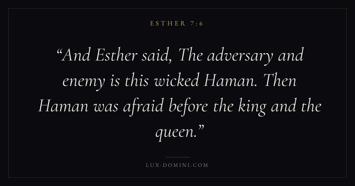 And Esther said, The adversary and enemy is this wicked Haman. Then Haman was afraid before the king and the queen.