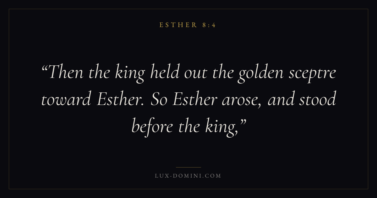 Then the king held out the golden sceptre toward Esther. So Esther arose, and stood before the king,