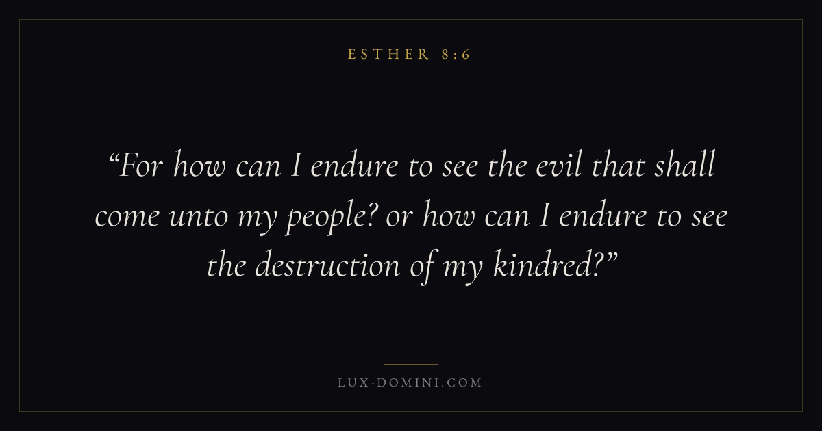 For how can I endure to see the evil that shall come unto my people? or how can I endure to see the destruction of my kindred?