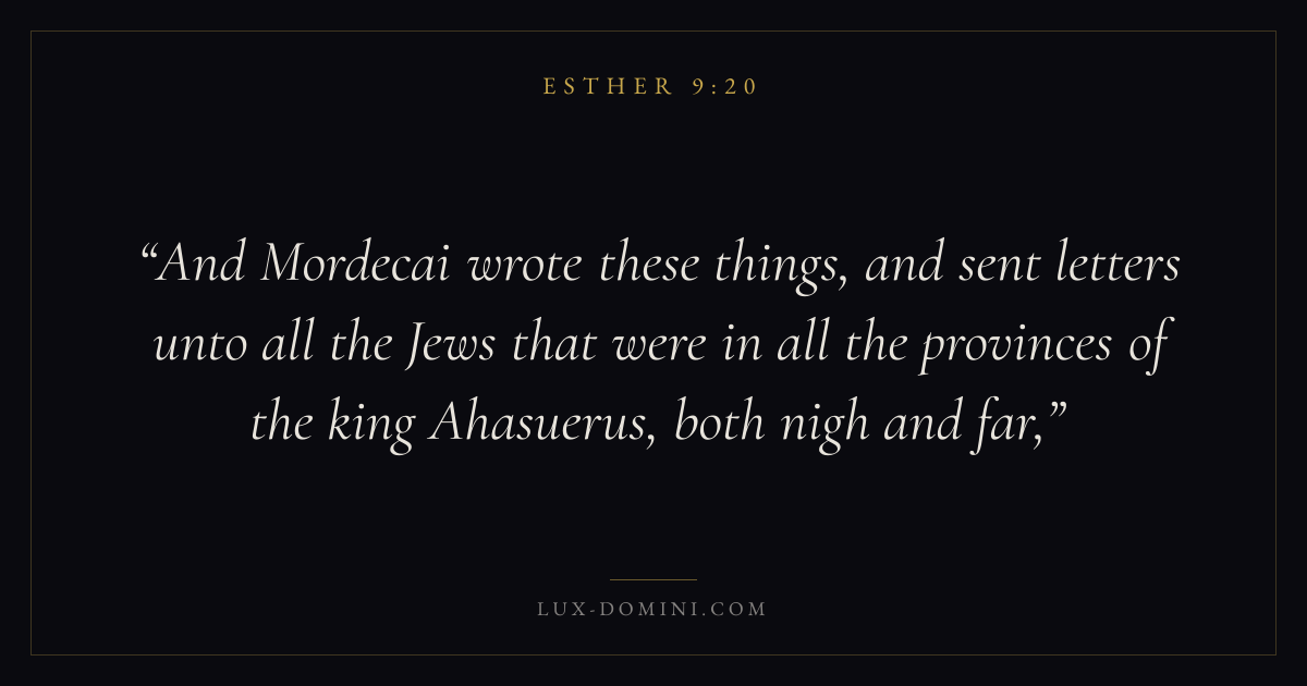 And Mordecai wrote these things, and sent letters unto all the Jews that were in all the provinces of the king Ahasuerus, both nigh and far,