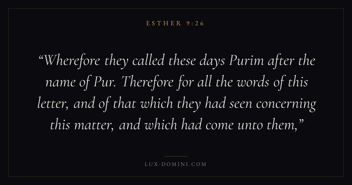 Wherefore they called these days Purim after the name of Pur. Therefore for all the words of this letter, and of that which they had seen concerning this matter, and which had come unto them,