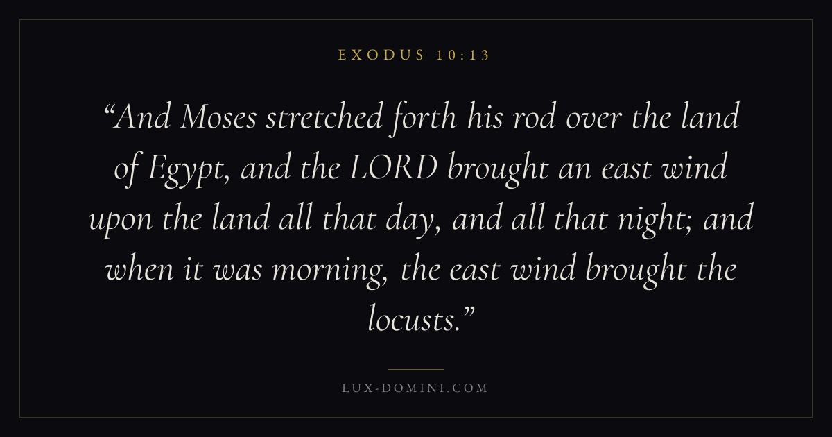 And Moses stretched forth his rod over the land of Egypt, and the LORD brought an east wind upon the land all that day, and all that night; and when it was morning, the east wind brought the locusts.