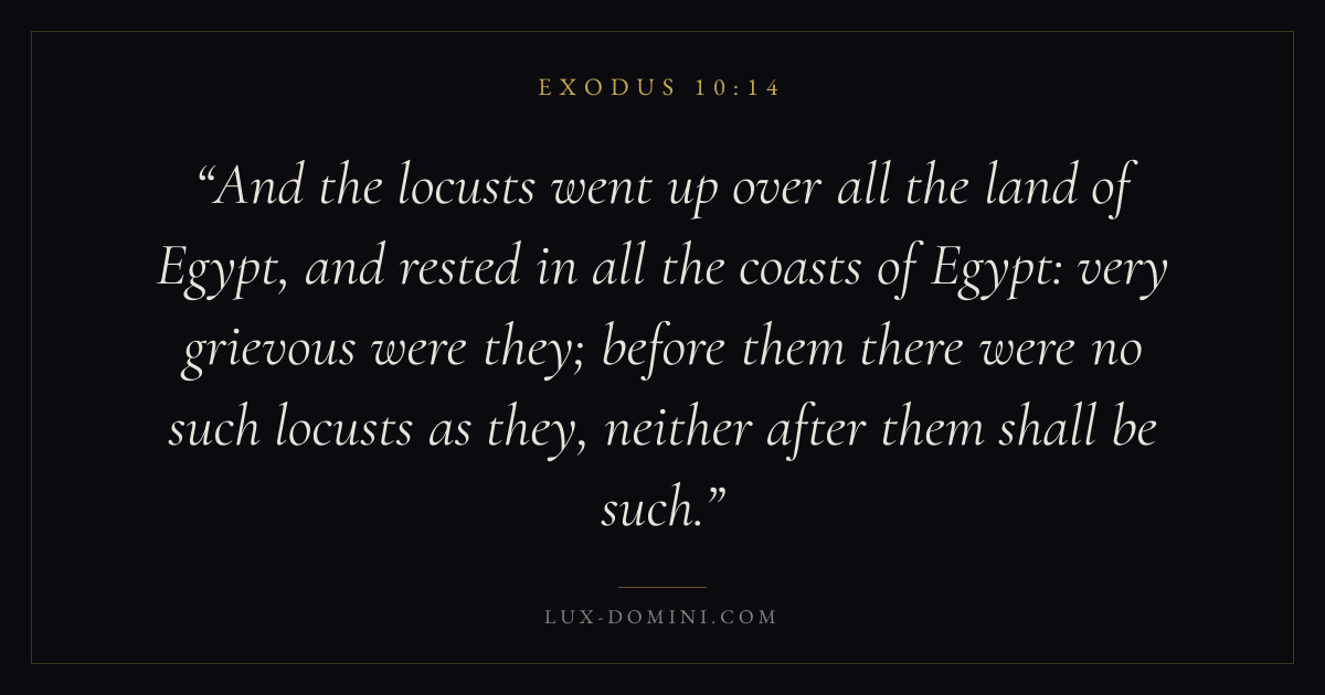 And the locusts went up over all the land of Egypt, and rested in all the coasts of Egypt: very grievous were they; before them there were no such locusts as they, neither after them shall be such.